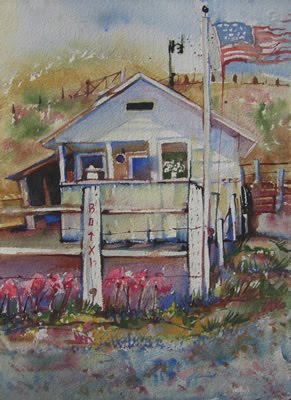 Karen and I parked on Brookside, the street narrowly flanked by Wildcat and San Pablo creeks, then walked to J. H. Davis using a pedestrian passageway between two houses. Wildcat was almost dry, while the previous week we had seen the still flowing waters of San Pablo. As we walked into the higher ground next to an impossibly green baseball field, I saw a group of boys ages 6-13 playing soccer, which I decided I would paint. I set my easel far enough to hope I would stay unnoticed, bu it wasn't the case. They stopped their game minutes later and walked over. They had great manners! Later, I found out none attended the public elementary school by the park. Some went as far as Berkekey to get their parochial education. They had very good questions ("If you're painting a car and it drives away, how do you deal with that?") and even helped Karen when the wind blew her whole setup. I decided to continue painting the empty field, as lately I am into "emptiness."